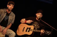 Musiker war er auch „vorher" schon und ist es noch immer, mit wachsendem Erfolg. Er liebt den Rock, gibt als Vorbilder Metallica, Stonesour und Billy Talent an, singt und spielt mit seinem Bruder Michael in der erfolgreichen Metallica-Cover-Band Sacarium und geht mit „Regner Akustisch" seinen eigenen Weg weiter, den er in der recht gut gefüllten Kulturfabrik NUTS vor heimischem Publikum eindrucksvoll aufzeigte. Die sieben besten Songs von „Kurz unsterblich" hatte Tobias Regner kurz zuvor mit ins „Springroad"-Studio seines Freundes David Perchermeier genommen und als Akustik-Set mit Gitarre, Klavier und Bass, sowie mit seinem Bruder Michael an der Cajon arrangiert. Live zieht das die Zuschauer unheimlich mit, erfordert und bekommt ungeteilte Aufmerksamkeit. Wenn sich der harmonische und überwältigende Zweigesang des sympathischen Brüderpaares nicht mehr hinter einer Band „verstecken" muss, sondern nur durch das filigrane Spiel von „halbangestöpselter" Gitarre und Cajon getragen wird, bekommen Texte wie „Die richtigen Worte" (die oft so schwer fallen) , „Kurz unsterblich" und „Ein allerletztes Mal" („Lass die Tränen noch etwas warten... Der Rest von unsrem Leben fängt jetzt grad erst an...") ein völlig anderes Gewicht, eine Intensität die mangels anderweitiger Ablenkung richtig unter die Haut geht.
